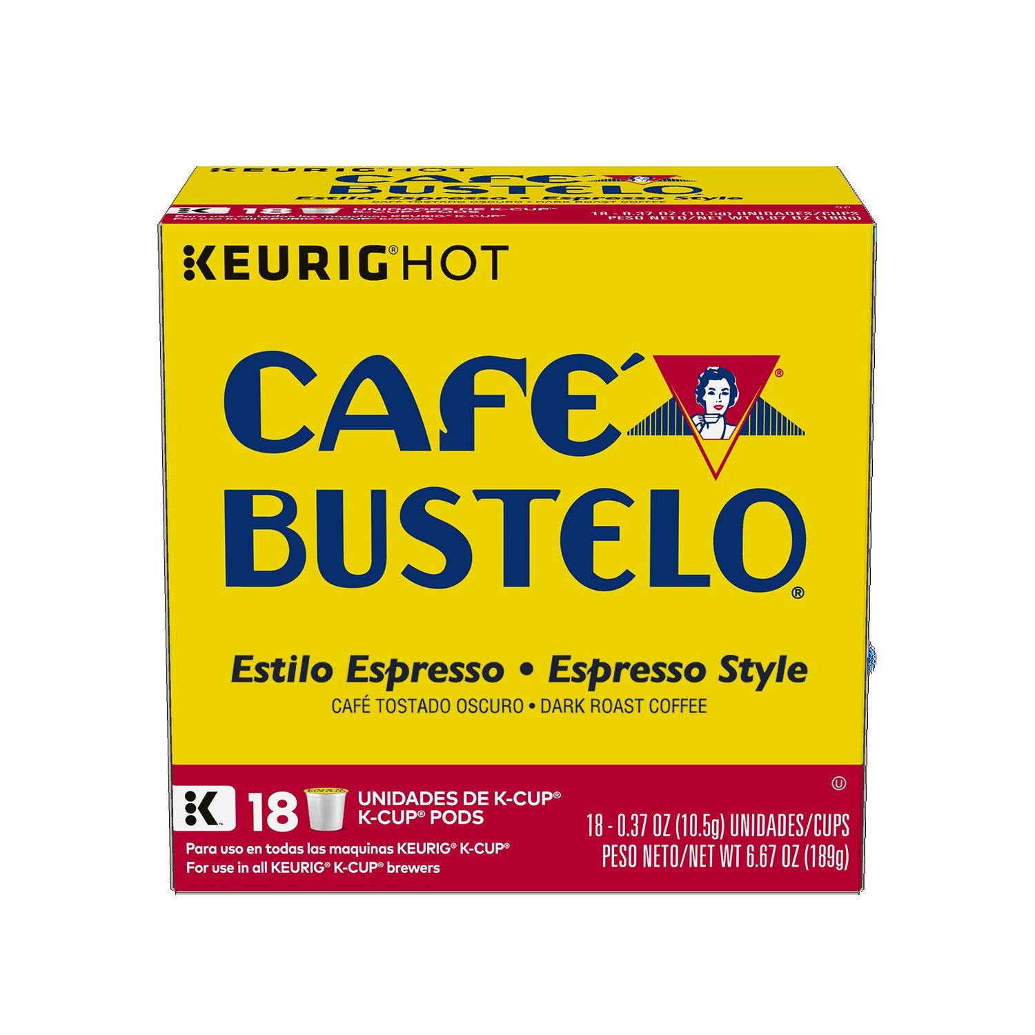 Featuring a full-bodied, bold flavor, Café Bustelo Espresso Style K-Cup Pods offer an invigorating start to your morning. This dark roast is made from 100 percent pure coffee beans and perfectly roasted to deliver a rich, intense flavor sip after sip. Ideal for creating mixed coffee beverages such as cortaditos or café con leche, the coffee stands up to milk and sugar exceptionally well and retains its rich flavor even after mixing. It comes packaged in convenient K-Cup pods that make brewing fast and effortless.